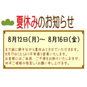 本日は、夏休みのお知らせです8月12日(月) - 16日(金)まで誠に勝手ながら夏休みとさせていただきます。8月17日(土)より平常通り営業いたします。お客様にはご迷惑・ご不便をおかけいたしますが、何卒ご理解のほどよろしくお願い申し上げます。#pino #パン #パン屋 #調布 #国領 #調布パン屋#バゲット #bread #bakery #京王線 #無添加パン#おいしいパン #おいしいパン屋さん #食パン#クリームパン #国産小麦 #パン好きな人と繋がりたい