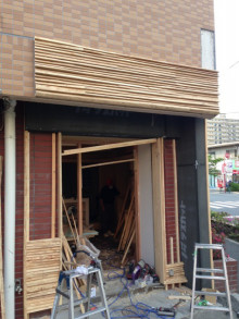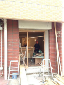 着工23日目です。 入り口にガラスが入りました。これだけ大きなガラスが入った扉になりましたが、軽く開け閉め出来ました。女性の方でも大丈夫です。 厨房と売り場の扉も出来て来ました。 こちらも非常に軽くて良い感じです。こちら […]